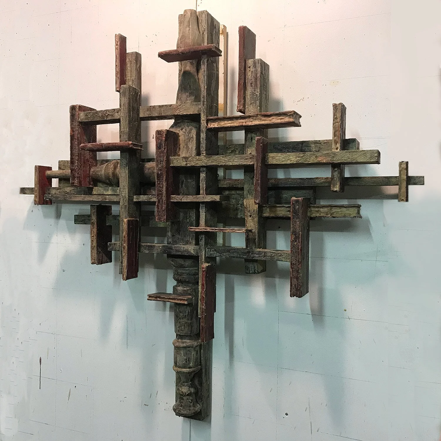 The “poulpes” and tree forms were extended into three dimensional space using wood moldings, tree limbs, furniture parts, books, wax and paint.